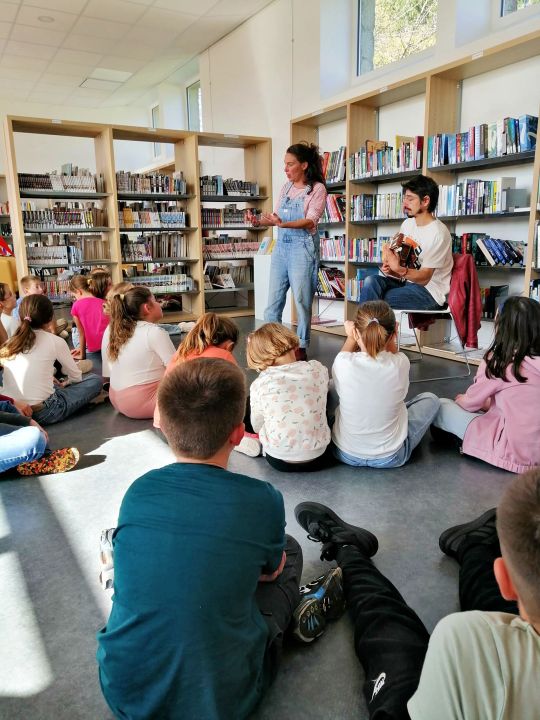 Les élèves de Ce2-Cm ont participé à un projet culturel avec 2 artistes conteurs et musiciens de l'Audacieuse Compagnie.