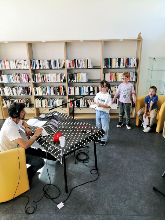 Les élèves ont appris à écrire des textes poétiques grâce à la technique de l'écriture automatique, dirigée par Julie. Ils ont également appris à travailler leur voix pour les enregistrements derrière le micro.